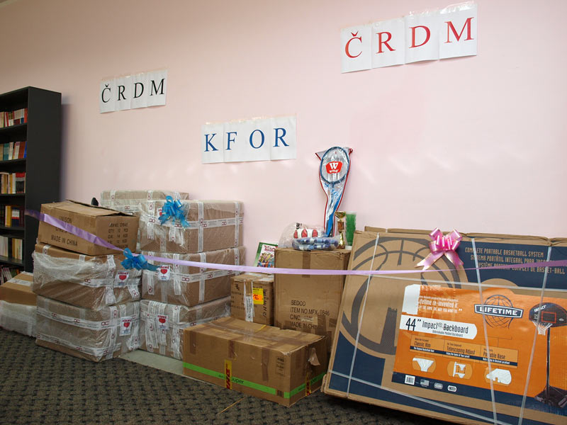 Díky vstřícnosti Armády České republiky, jež zajistila dopravu, jsme opět mohli osobně předat dar jeho příjemcům, tentokrát gymnáziu v kosovském městě Podujevo.