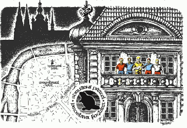 Postavy Rychlých šípů v životní velikosti se budou celý měsíc do 17. prosince, kdy v roce 1938 vyšel jejich první kreslený příběh v časopisu Vpřed, dívat na Pražany z balkonu kteréhosi domu na Starém Městě (mezi Vltavou a ulicemi Národní, 28. října, Na Příkopech, Revoluční).
