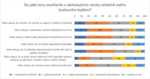 Hypotéku častěji plánují lidé, kteří již bydlí v páru (41 %), často ji zvažují ale i ti, kteří bydlí sami (29 %). O hypotéce moc neuvažují naopak lidé, kteří bydlí s rodiči nebo například ve spolubydlení. Vzít si hypotéku mezi mladými vyvolává velké obavy. Ti, kteří ji plánují v dohledné době uzavřít, deklarují vetší strach jak z obtížné finanční situace, tak špatné situace na trhu nemovitostí.