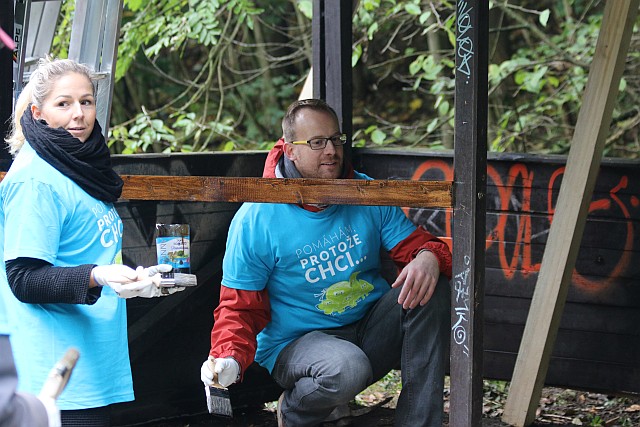Předseda České rady dětí a mládeže Aleš Sedláček (vlevo) s radním Prahy 6 Liborem Bezděkem (foto Jiří Majer)Celý projekt ve čtvrtek dopoledne oficiálně zahájila akce České rady dětí a mládeže v Divoké Šárce v Praze 6, kde dobrovolníci pracovali na obnově turistického altánu. „Opravili jsme střechu, vybetonovali podstavec, vyměnili zchátralé dřevěné části objektu. Byly to i práce odborné, proto nám s rekonstrukcí pomohly i Lesy hlavního města Prahy,“ uvedl místopředseda České rady Ondřej Šejtka.