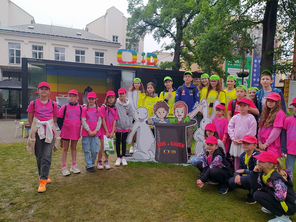 Dále jsme navštívili stánek České televize, kde se prezentovalo studio „Déčko“. Tady jsme se mohli vyfotografovat a fotky jsme si hned mohli odvézt domů. Odpoledne jsme se přesunuli k Velkému kinu, kde jsme byli svědky odhalení hvězd na chodníku slávy. V letošním roce byly odhaleny tři hvězdy – Taťaně Dykové a Petru a Matěji Formanovým. Byli jsme moc rádi, že jsme byli přítomni této velké slavnosti.