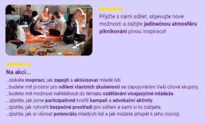 Na akci budete mít příležitost zkoumat spolu s námi možnosti zapojování mladých lidí do komunikace potřebnosti (nejen) systémových změn. Představíme Vám, jak zmocňování a participace může mladé lidi vybavit potřebnými dovednostmi, ale také jim zvýšit sebevědomí, aby se mohli stát hybateli změn. Mimo jiné také zjistíte, jak vytvořit bezpečné prostředí pro sdílení, jak jsme participativně tvořili kampaň a jak si všímat potenciálu mladých lidí a jak můžete přispět k jeho rozvoji.