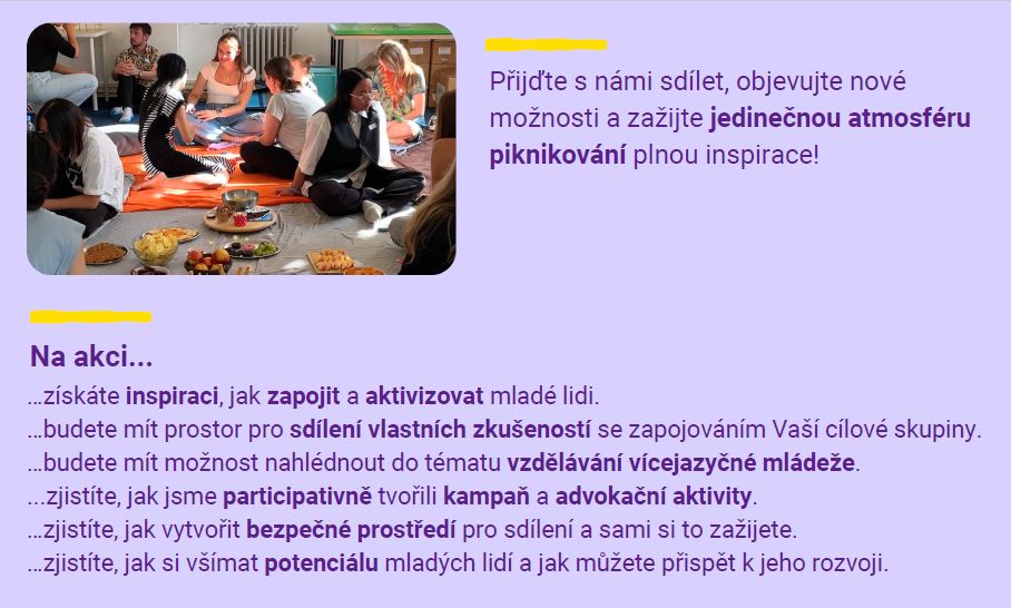 Nechte se inspirovat úspěšným projektem Náš hlas, který vznikl ve spolupráci s mladými lidmi s migrační zkušeností.Na akci je nutné se předem registrovat přes formulář. Více informací o akci najdete na našem webu nebo FB události.