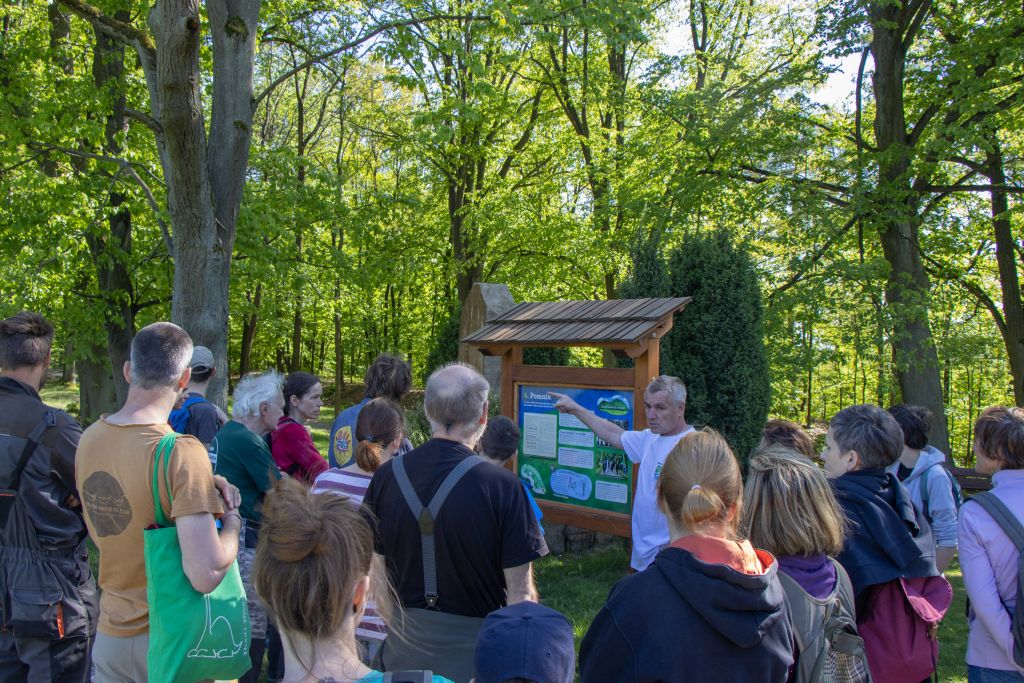 Následovala exkurze po části nové Lesní naučné stezky, které propojuje témata z historie obce s přírodou na kopci Milíř. Trasa vedla i přes ochranáři opečovávané stráně se starými ovocnými stromy. Právě na nich našly své místo dárky od Brontosaura přírodě – 4 hnízdní budky pro dudka a krutihlava.