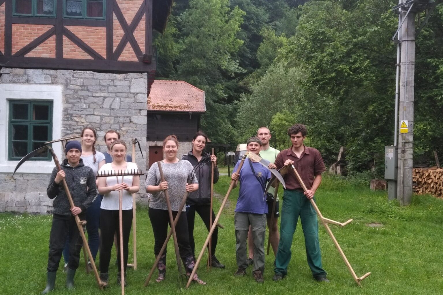 Šest statečných dobrovolníků se vydalo na Švýcárnu pokosit mokřadní louku. Byli jsme o to odvážnější, že většina z nás nedržela kosu nikdy v ruce. Proto jsme absolvovali večerní instruktáž doplněnou ráno praktickými ukázkami. Všichni jsme také kosení zvládli. Překvapením pak bylo, že mnohem náročnější než kosení je sběr pokosené trávy.