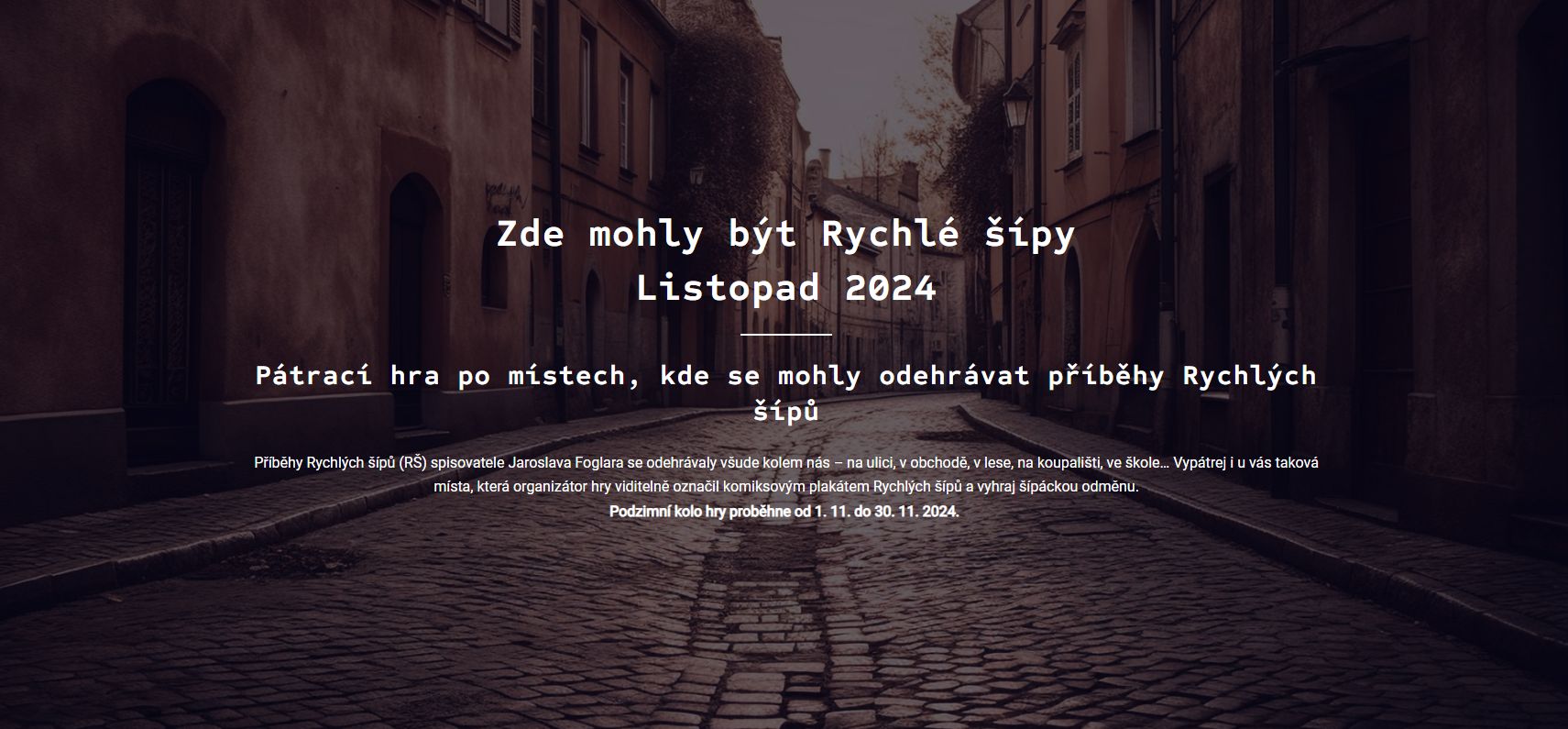 Příběhy Rychlých šípů spisovatele Jaroslava Foglara se odehrávaly všude kolem nás – na ulici, v obchodě, v lese, na koupališti, ve škole… Vypátrejte i u vás taková místa, která organizátor hry viditelně označil komiksovým plakátem Rychlých šípů a vyhrajte šípáckou odměnu.